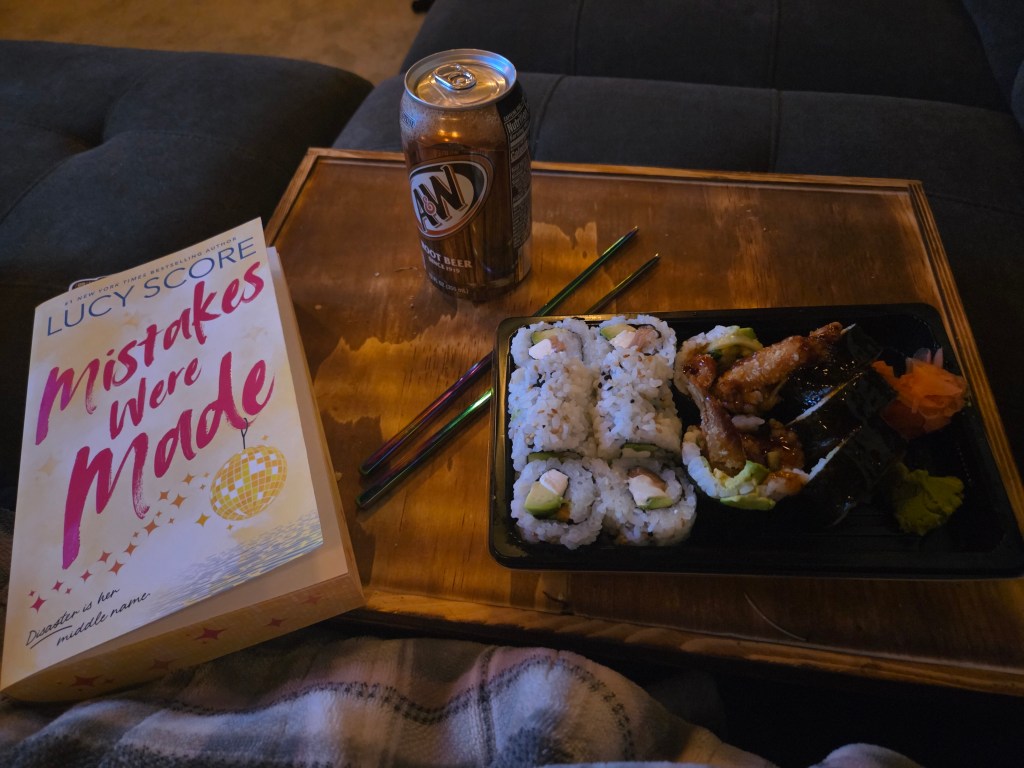 Recently, I decided to level up solo meals,and bought these adorable condiment dishes and metal chopsticks, and got snack trays for Christmas to put everything on – way better than laying a tv tray down flat like I had been doing.