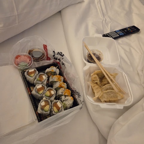 I learned a lot from my first stay, so the second year was a much better experience. Instead of ordering room service, I ordered sushi delivery, which is more in line with date yourself night anyway. And to really treat myself, I stopped to get a slice of cheesecake before checking in (and then pulled a Bruce Bugtrotter because…my mom’s is better *shrug*) for my late night sweet tooth. I brought a pastry with me for breakfast, which was a treat in and of itself, and packed a couple of snickity snacks in case I got hungry after dinner. All to say, the food is not why I’m staying at the Copperleaf. But, it’s also not enough to keep me away.