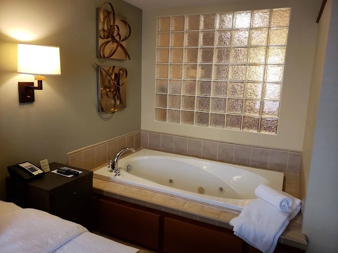 The whirlpool tub as the main attraction is enough to cancel out the (in my opinion) cons of the hotel. There is a restaurant on site where you can order room service, but if I’m being honest, I was not impressed during my first stay. And they don’t have a hot or even continental breakfast included in the stay. For any other stay, not having a complimentary breakfast is enough to deter me.